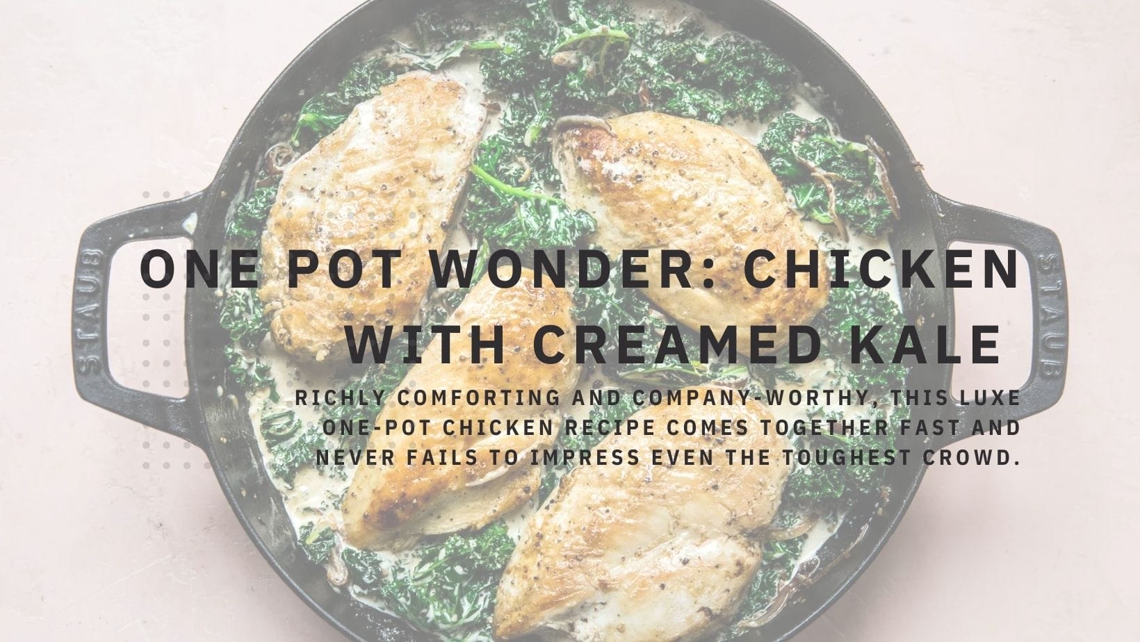 - Reduce the heat to medium-low and nestle the browned chicken breasts into the creamed kale. Add the olives and cook uncovered at a low simmer for about 15 minutes. Check for doneness by inserting an instant-read thermometer into the thickest part of the chicken breast. If it reads 74°C, the chicken breast is done!